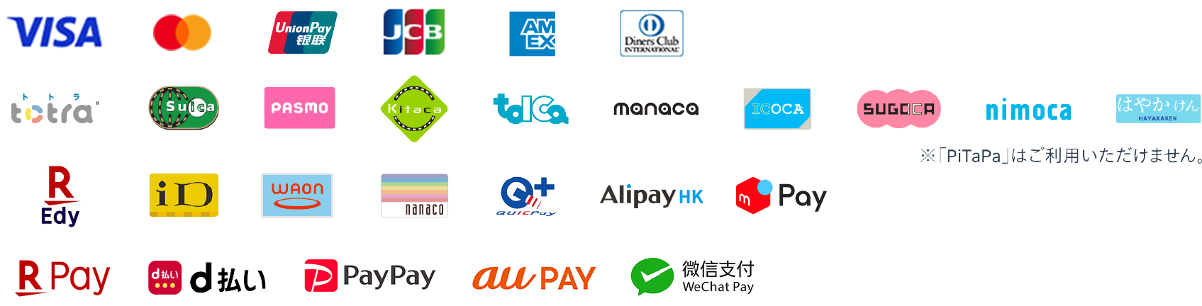 ・現金及び複数ブランドの併用、ポイント利用、電子マネーのチャージはできません。