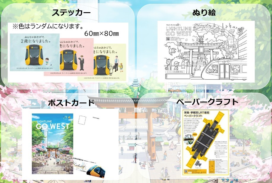 来場者にはライトライン開業2周年を記念したノベルティグッズをプレゼントします。