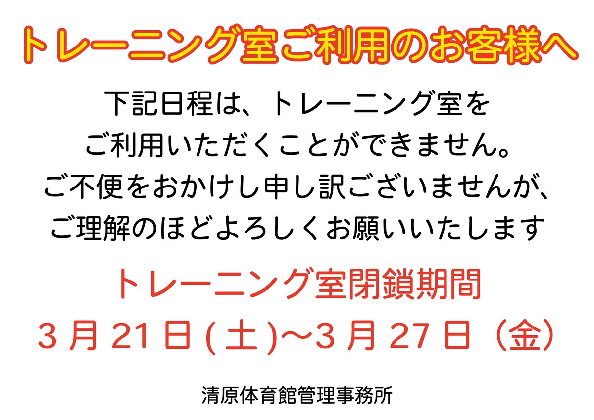 【3月】清原体育館トレーニング室 利用不可期間について